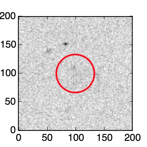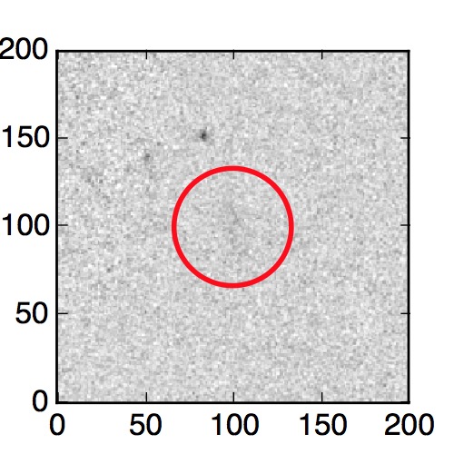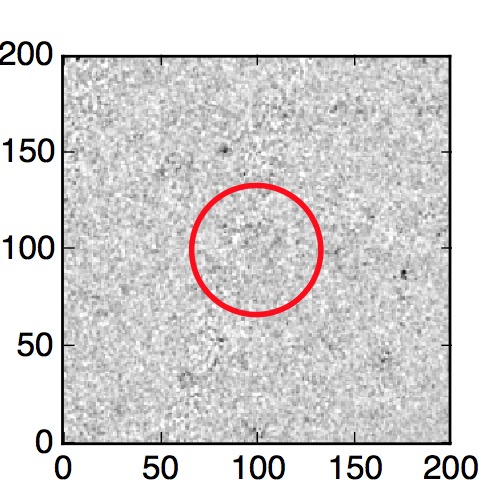 The red circle in the various panels is 1" in radius. The images are 6"x6".