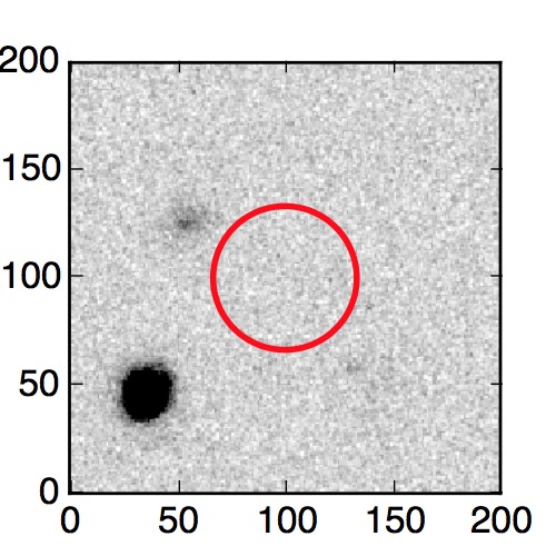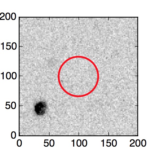 The red circle in the various panels is 1" in radius. The images are 6"x6".