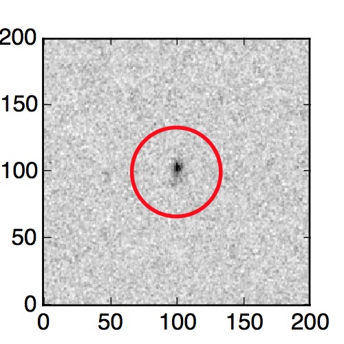 The red circle in the various panels is 1" in radius. The images are 6"x6".