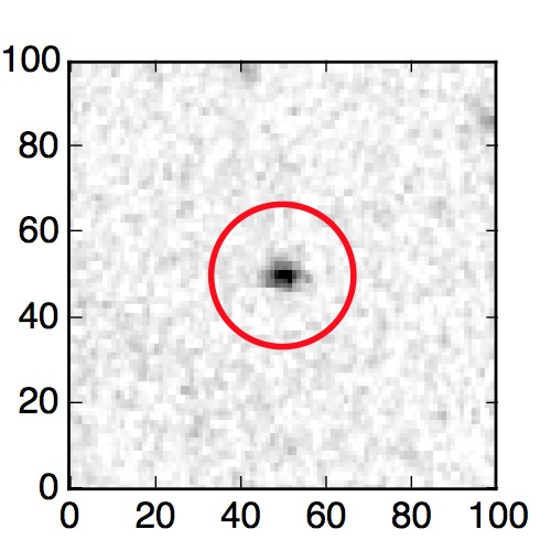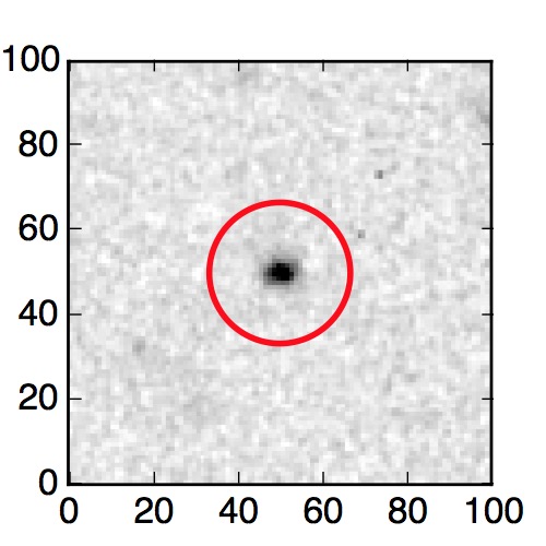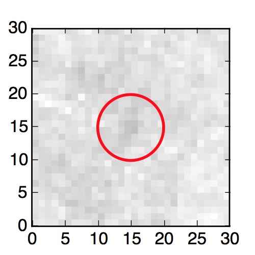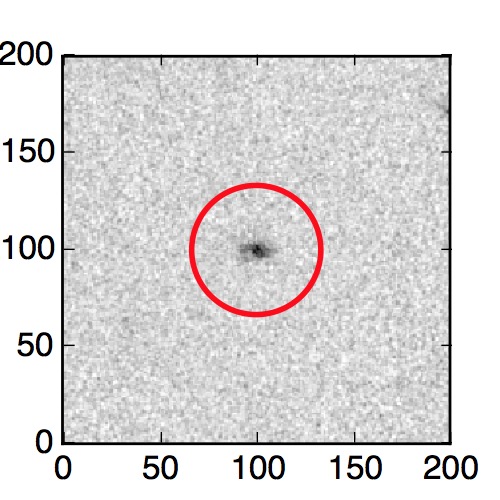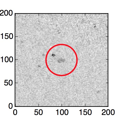 The red circle in the various panels is 1" in radius. The images are 6"x6".