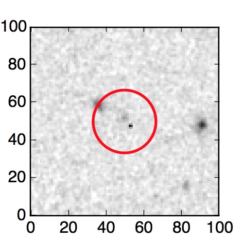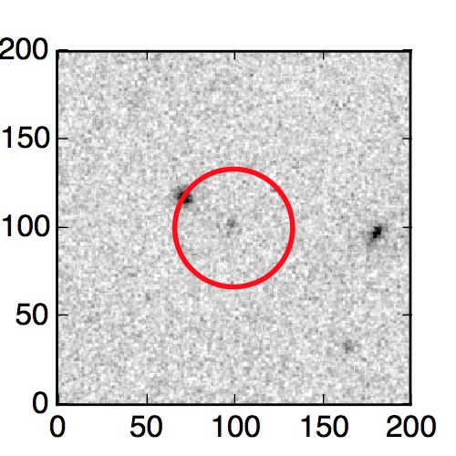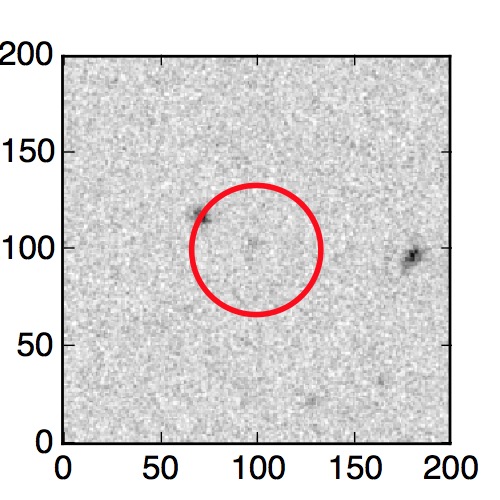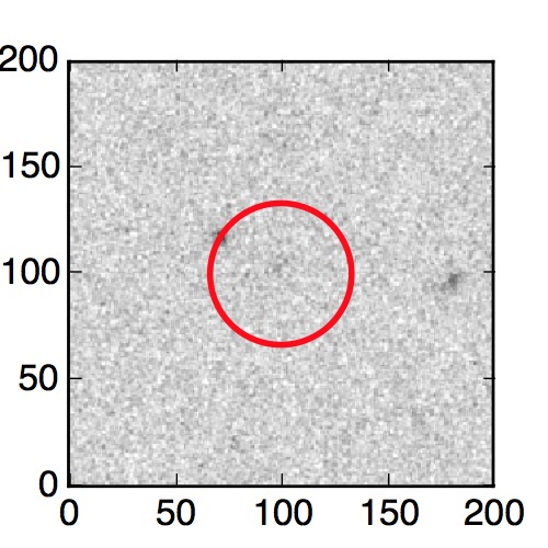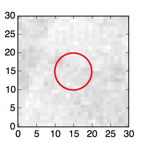 The red circle in the various panels is 1" in radius. The images are 6"x6".