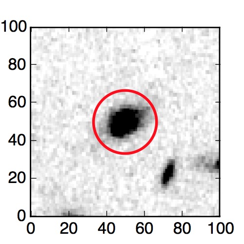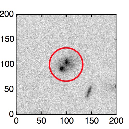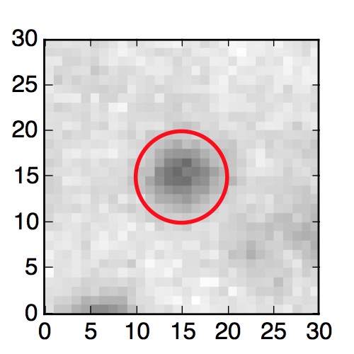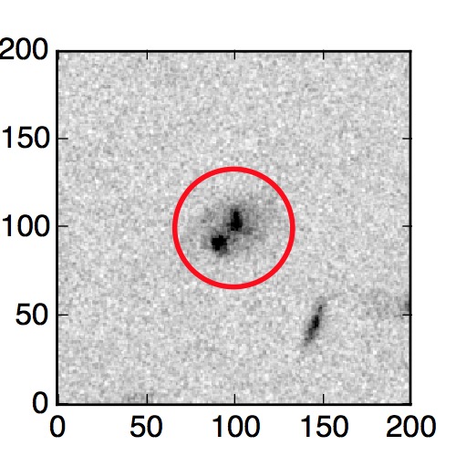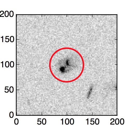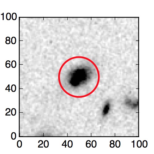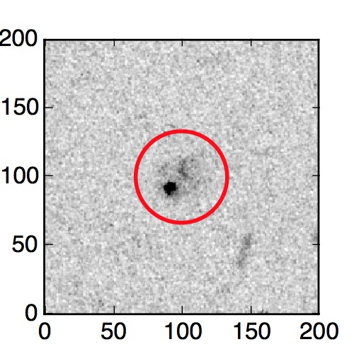 The red circle in the various panels is 1" in radius. The images are 6"x6".