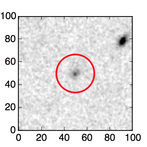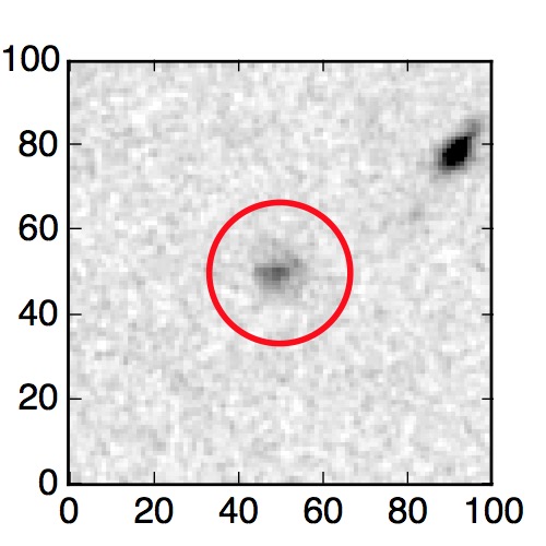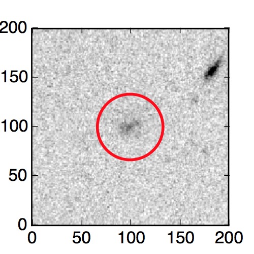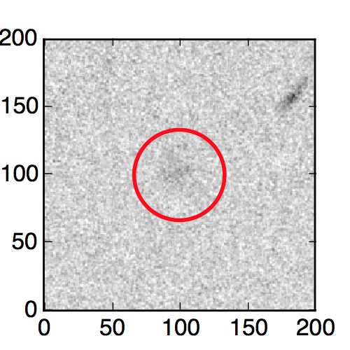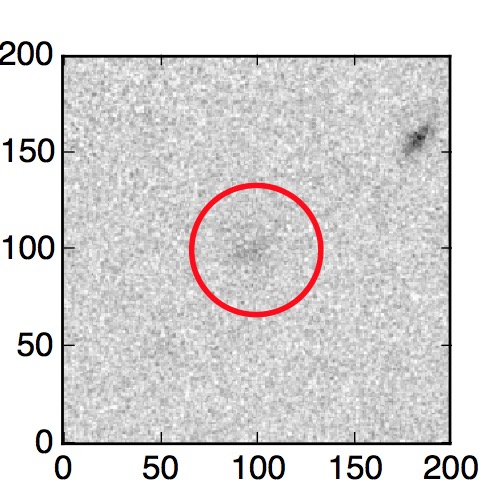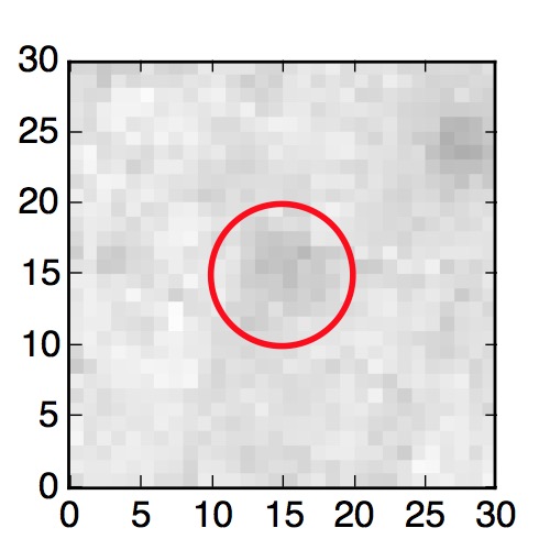 The red circle in the various panels is 1" in radius. The images are 6"x6".