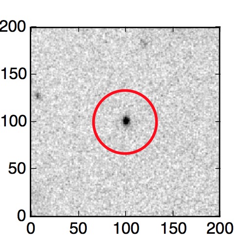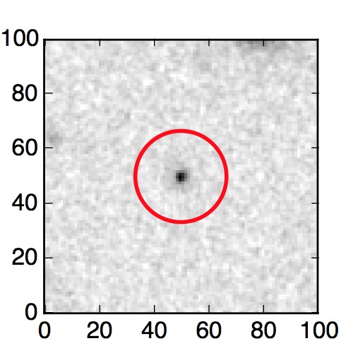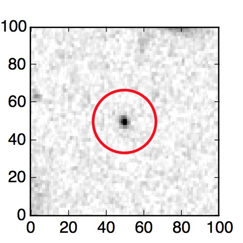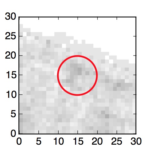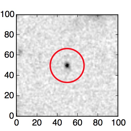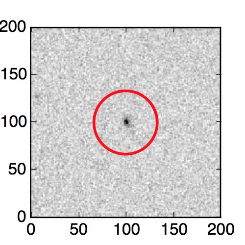 The red circle in the various panels is 1" in radius. The images are 6"x6".