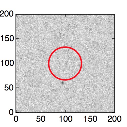 The red circle in the various panels is 1" in radius. The images are 6"x6".