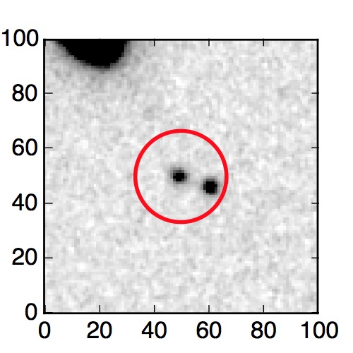 The red circle in the various panels is 1" in radius. The images are 6"x6".