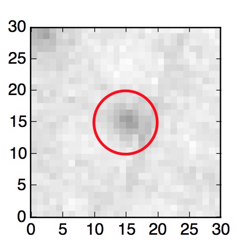 The red circle in the various panels is 1" in radius. The images are 6"x6".