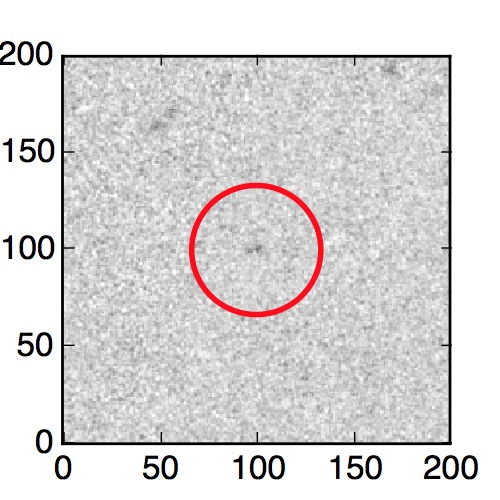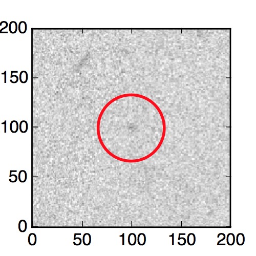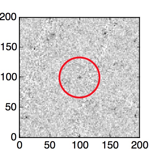The red circle in the various panels is 1" in radius. The images are 6"x6".