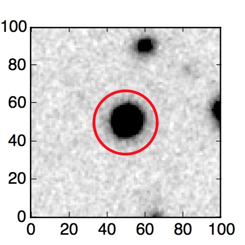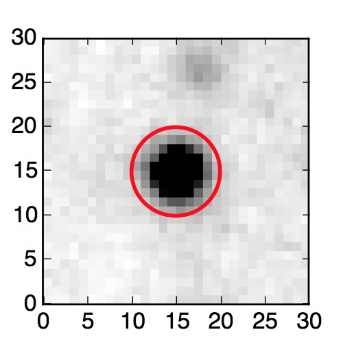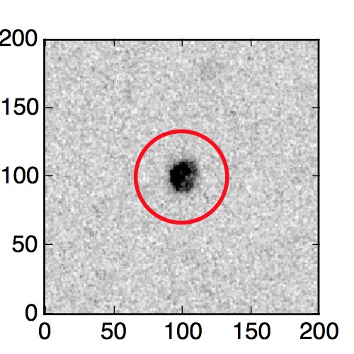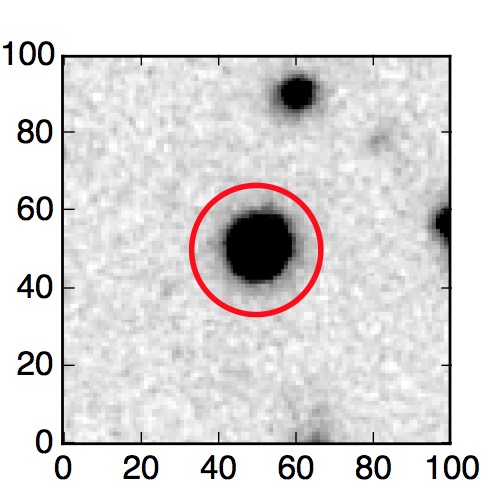 The red circle in the various panels is 1" in radius. The images are 6"x6".