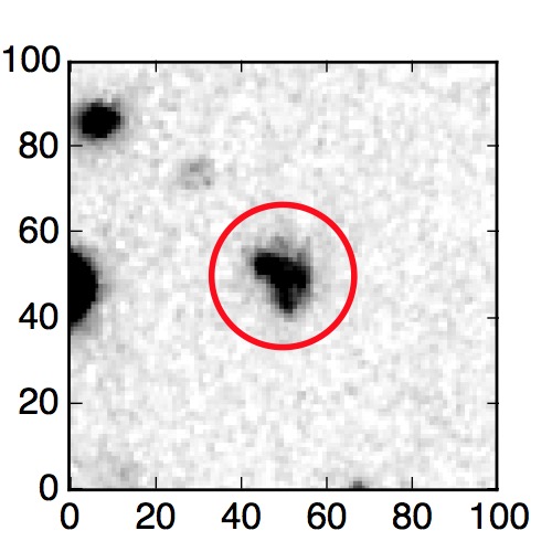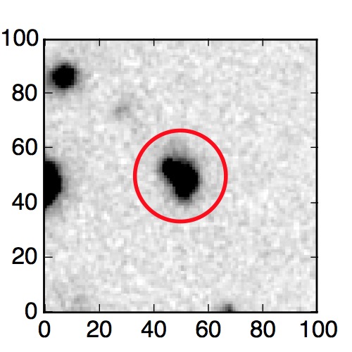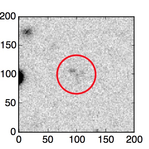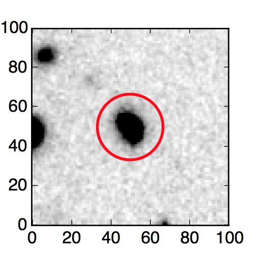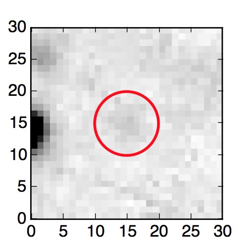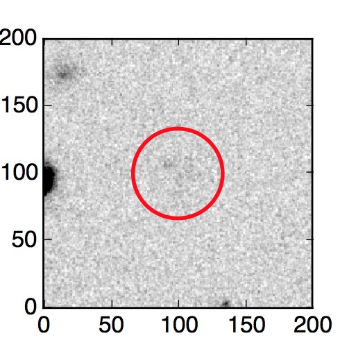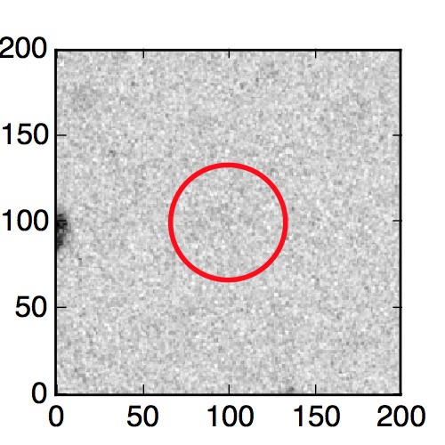The red circle in the various panels is 1" in radius. The images are 6"x6".