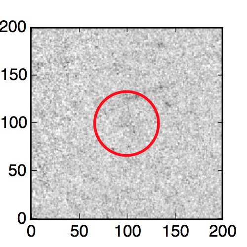 The red circle in the various panels is 1" in radius. The images are 6"x6".