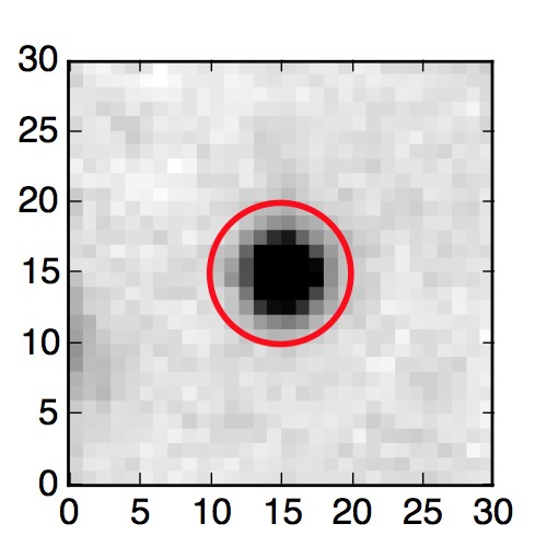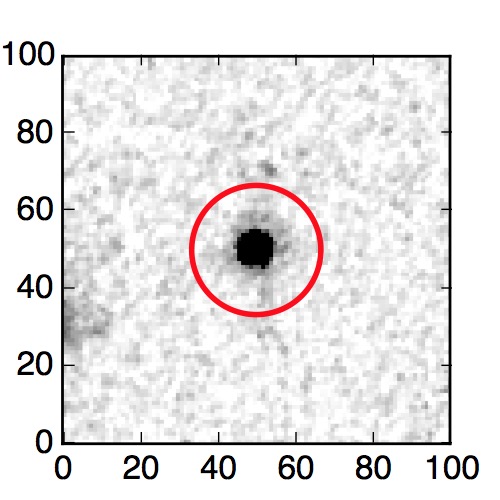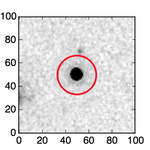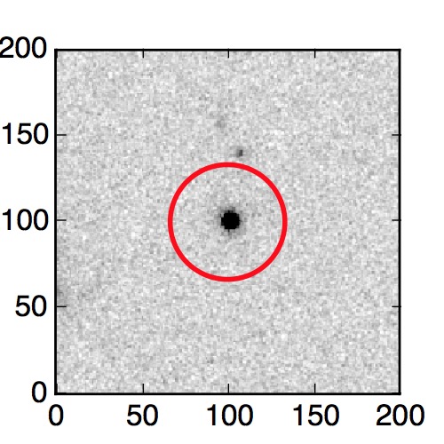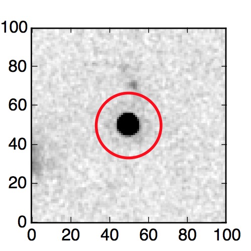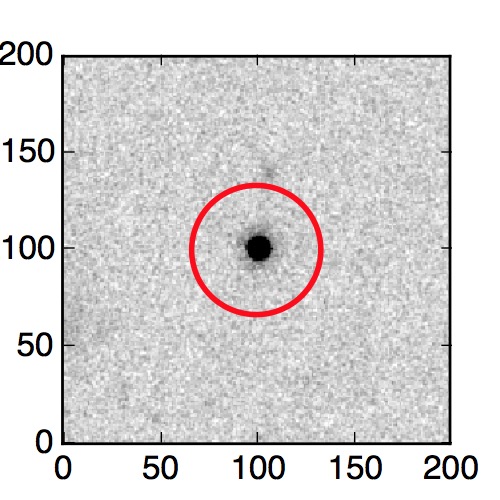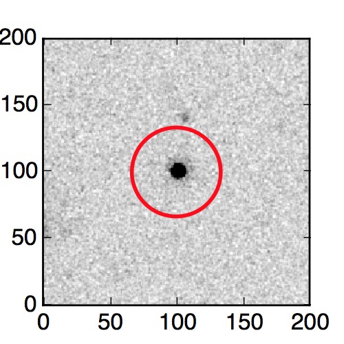 The red circle in the various panels is 1" in radius. The images are 6"x6".