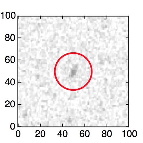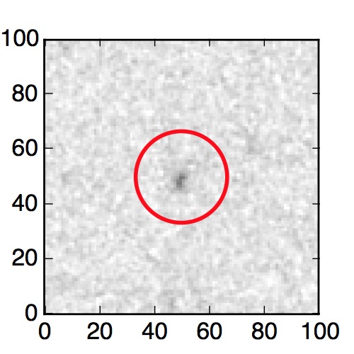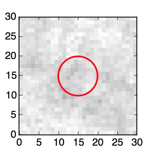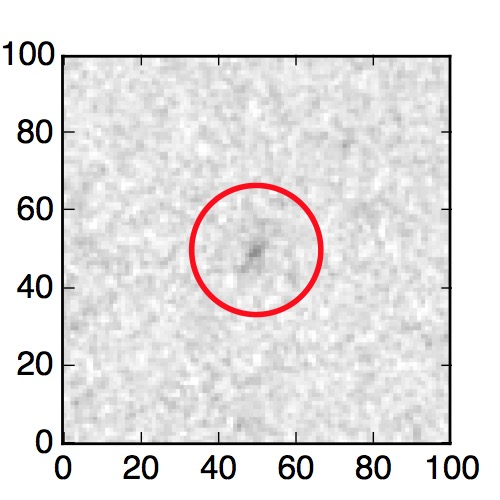 The red circle in the various panels is 1" in radius. The images are 6"x6".