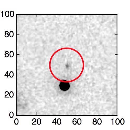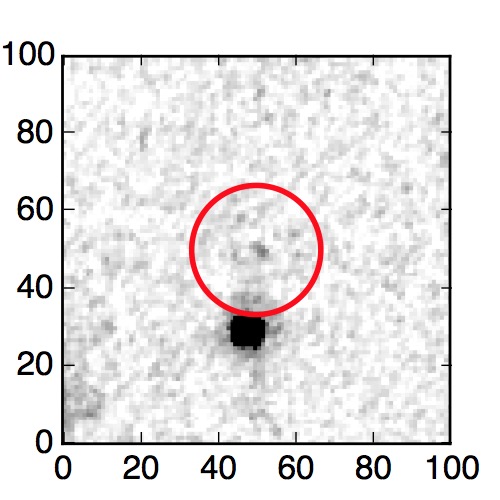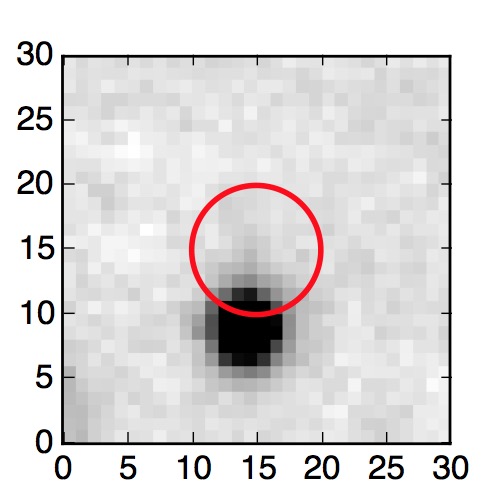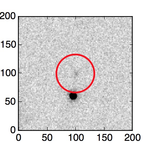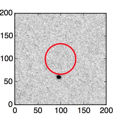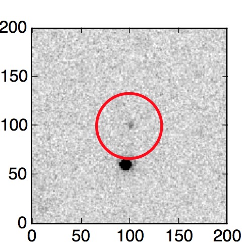 The red circle in the various panels is 1" in radius. The images are 6"x6".