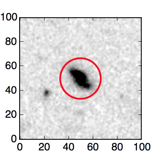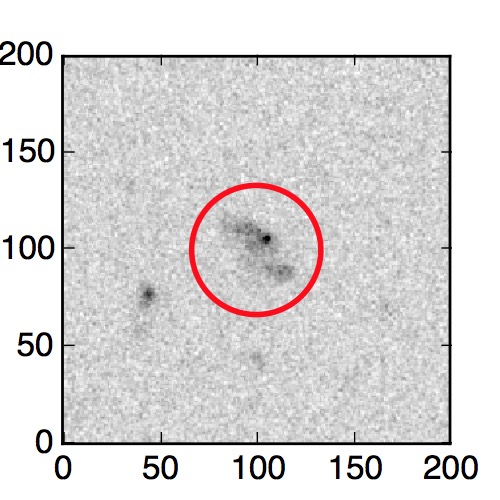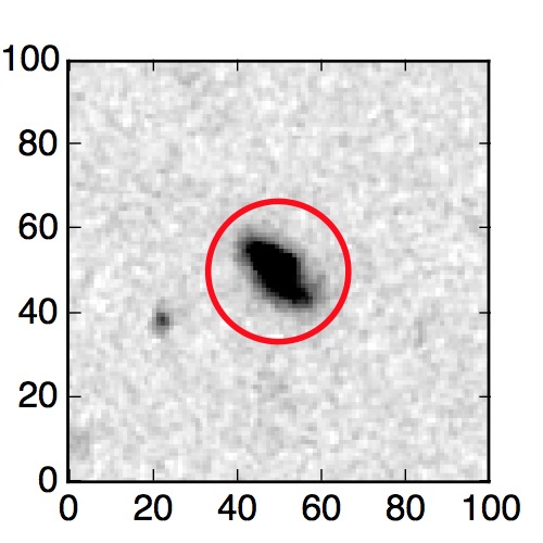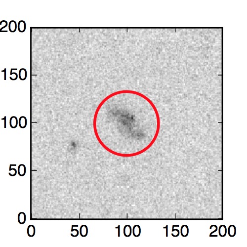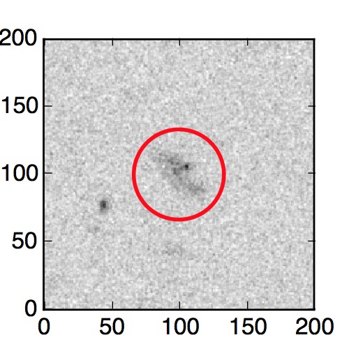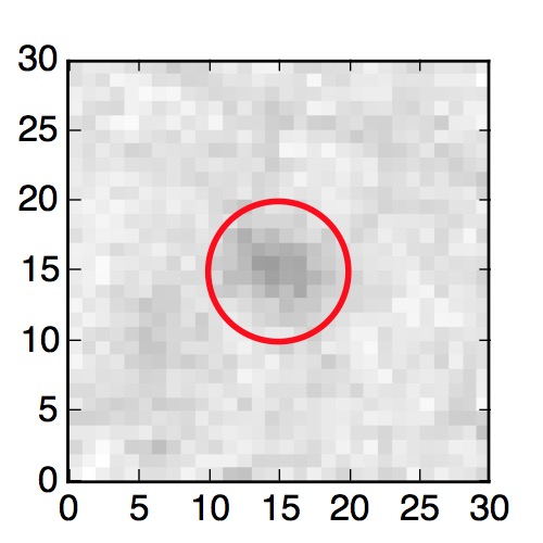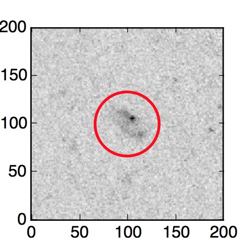 The red circle in the various panels is 1" in radius. The images are 6"x6".