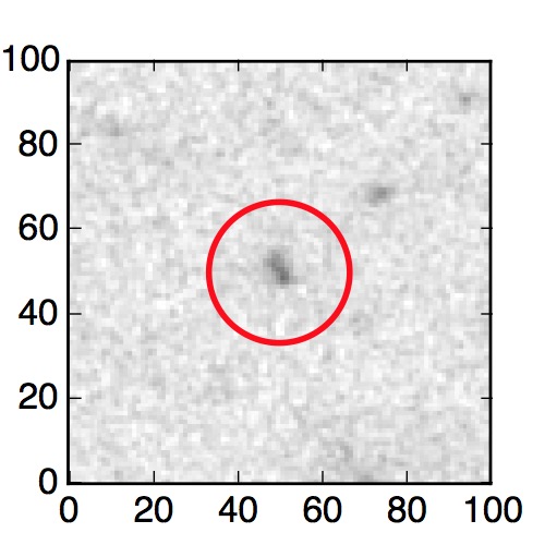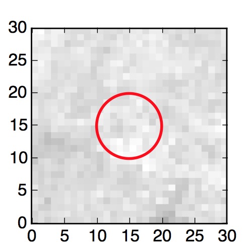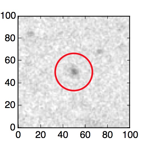 The red circle in the various panels is 1" in radius. The images are 6"x6".