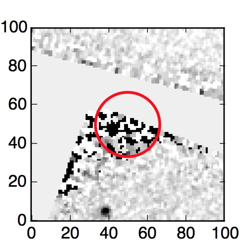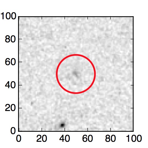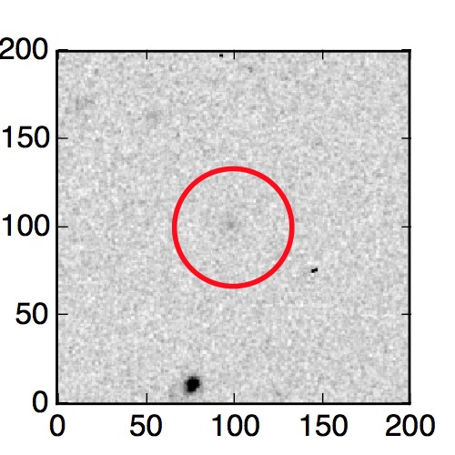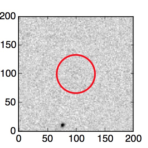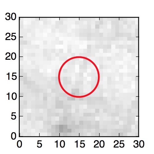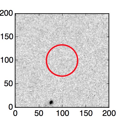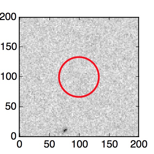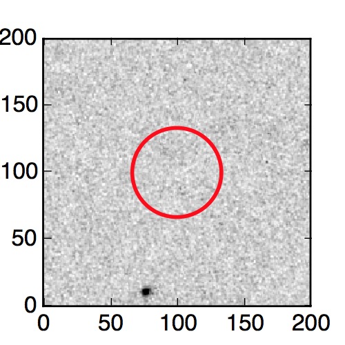 The red circle in the various panels is 1" in radius. The images are 6"x6".