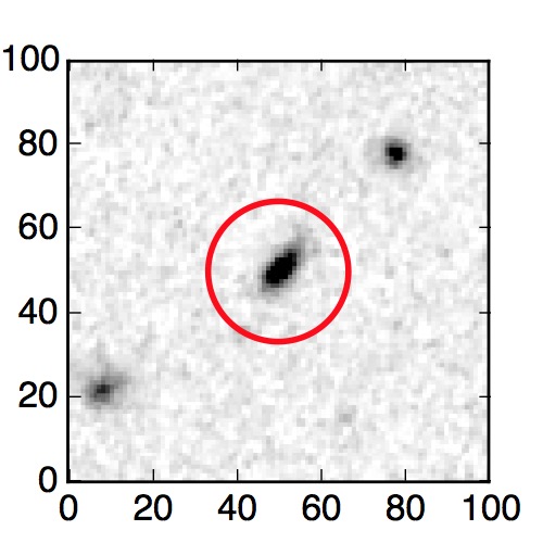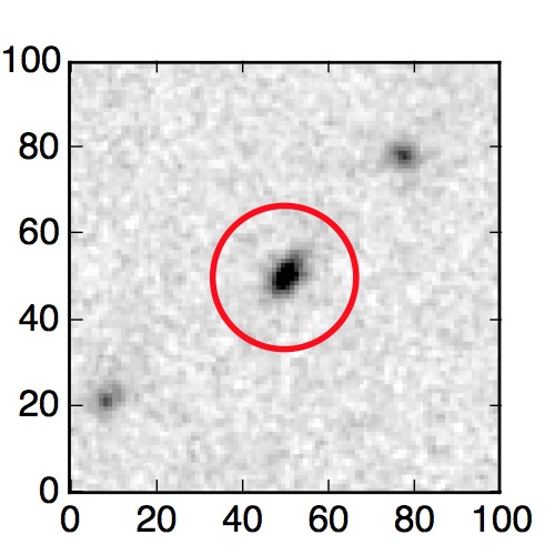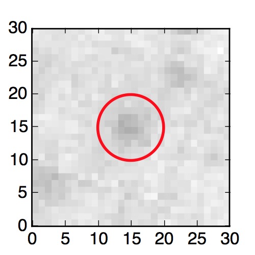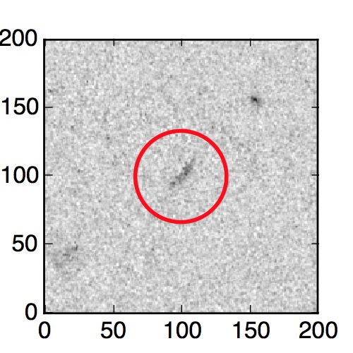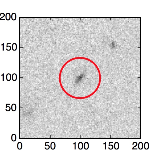 The red circle in the various panels is 1" in radius. The images are 6"x6".