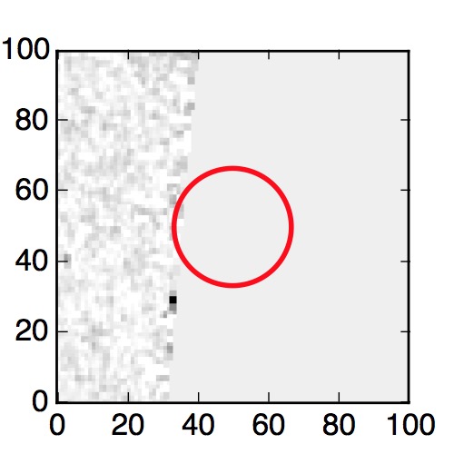 The red circle in the various panels is 1" in radius. The images are 6"x6".