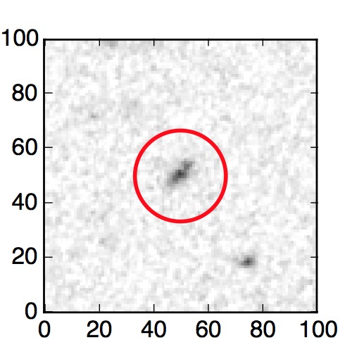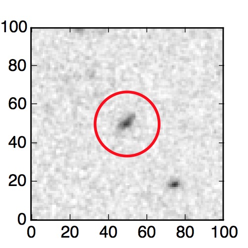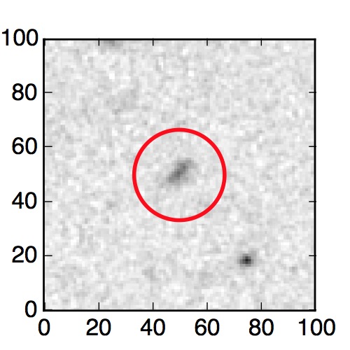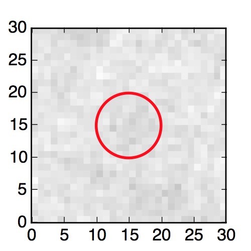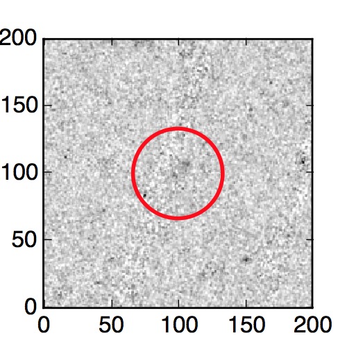 The red circle in the various panels is 1" in radius. The images are 6"x6".