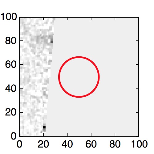 The red circle in the various panels is 1" in radius. The images are 6"x6".