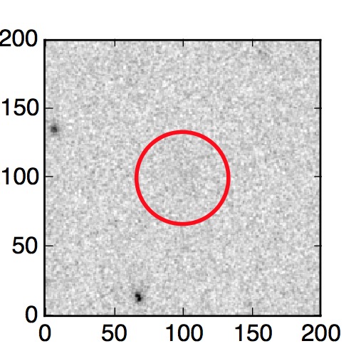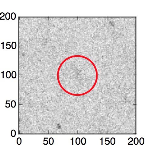 The red circle in the various panels is 1" in radius. The images are 6"x6".