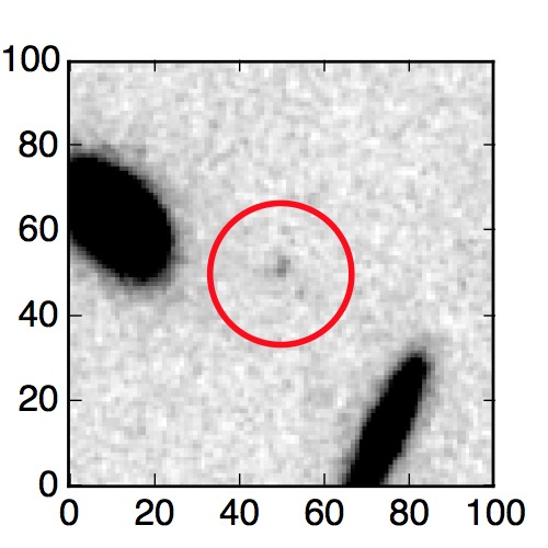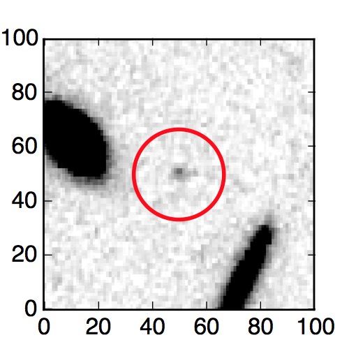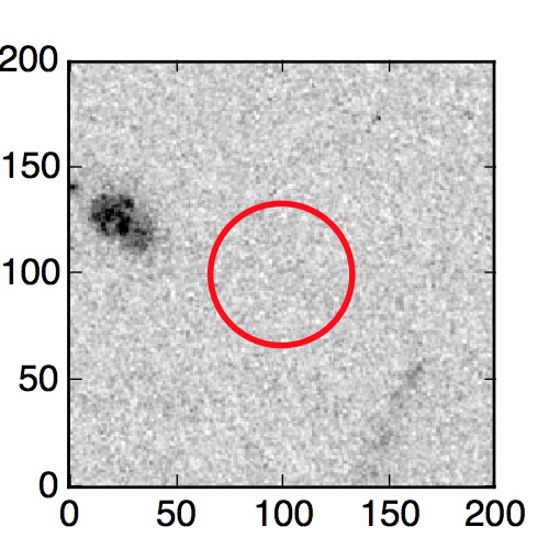 The red circle in the various panels is 1" in radius. The images are 6"x6".