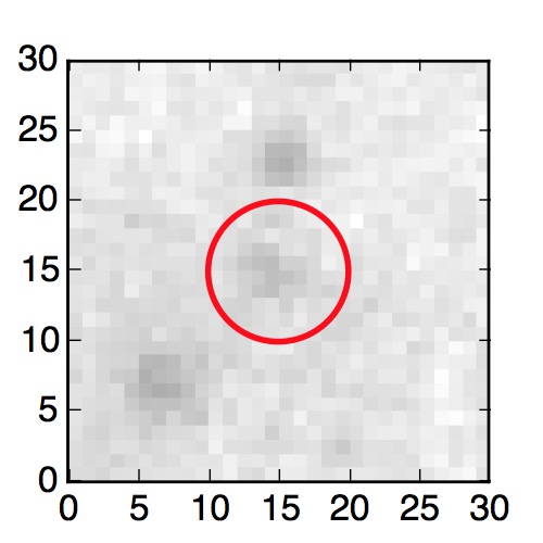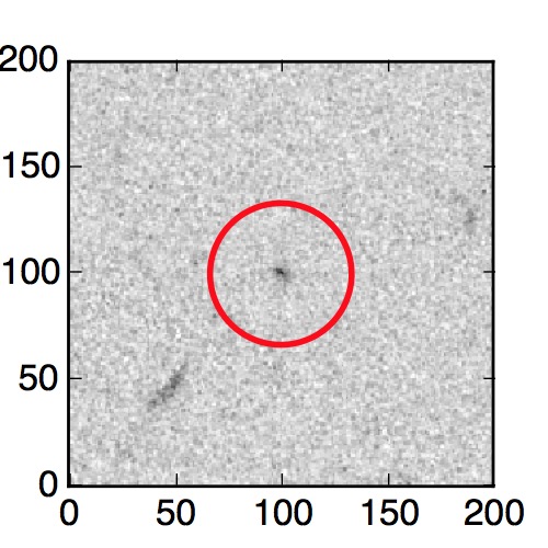 The red circle in the various panels is 1" in radius. The images are 6"x6".
