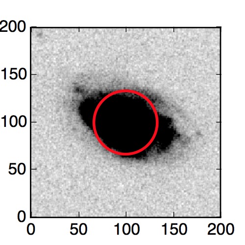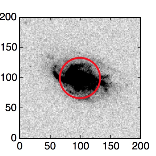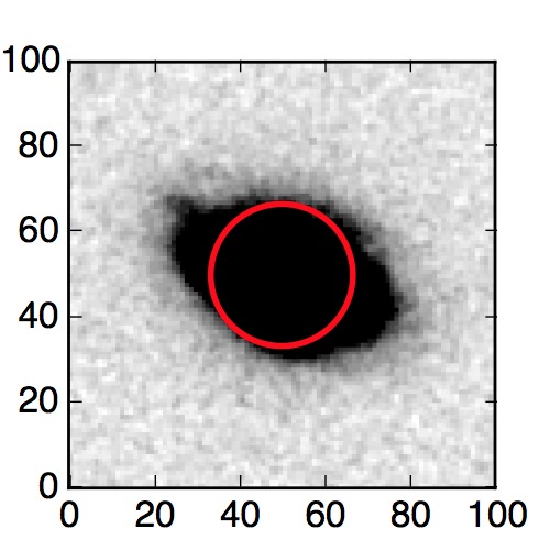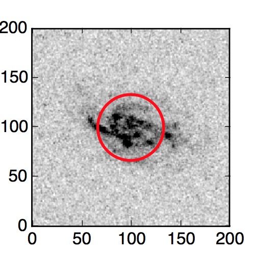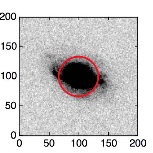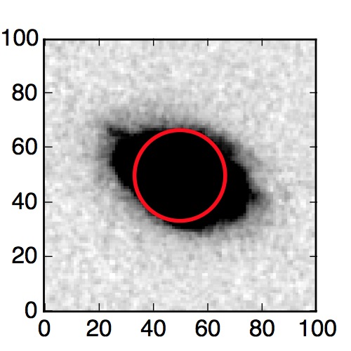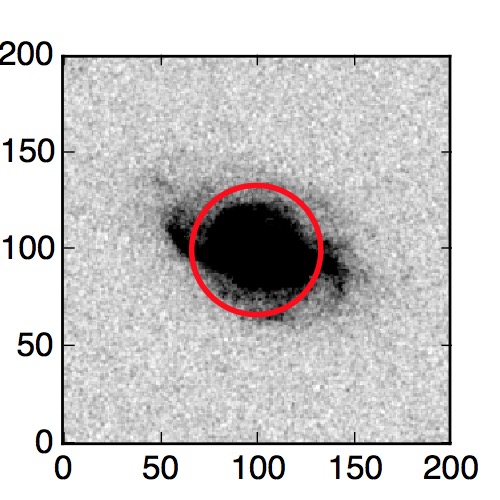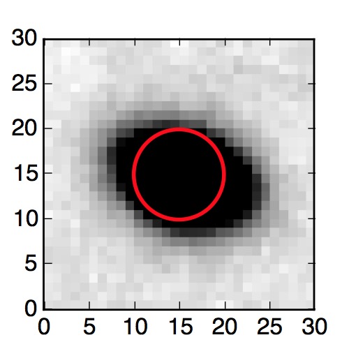 The red circle in the various panels is 1" in radius. The images are 6"x6".