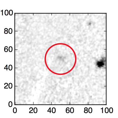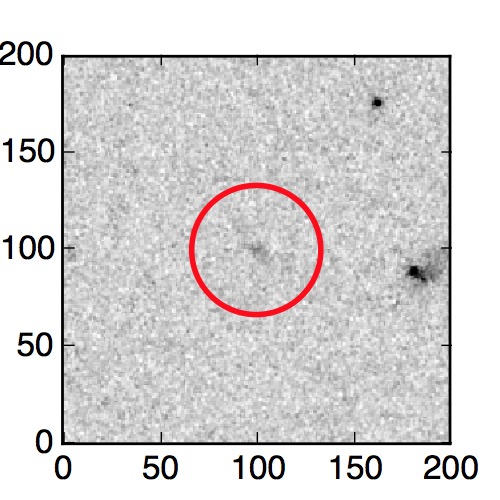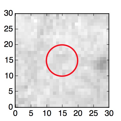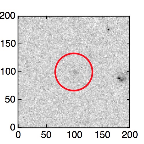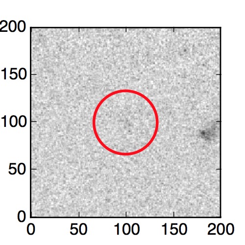 The red circle in the various panels is 1" in radius. The images are 6"x6".