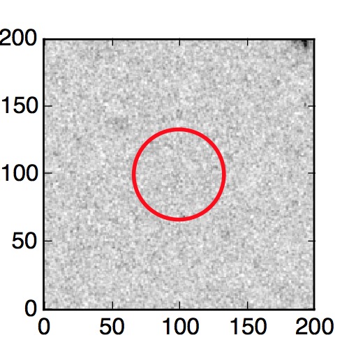 The red circle in the various panels is 1" in radius. The images are 6"x6".