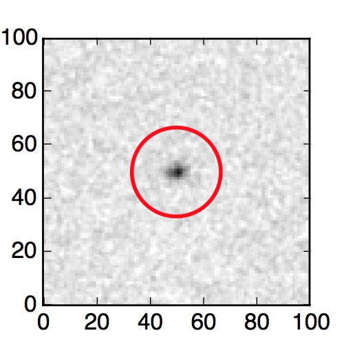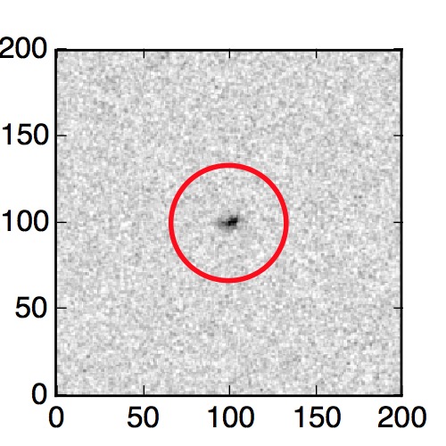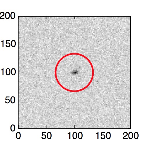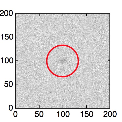 The red circle in the various panels is 1" in radius. The images are 6"x6".