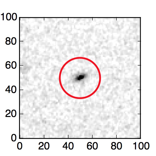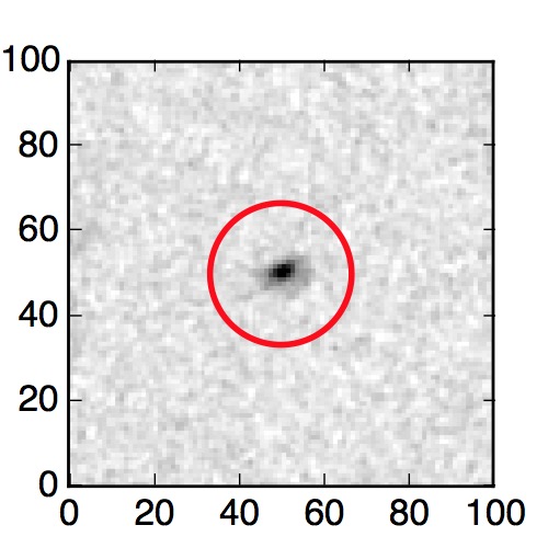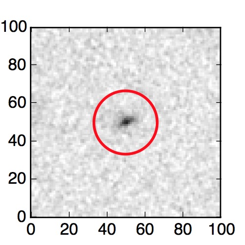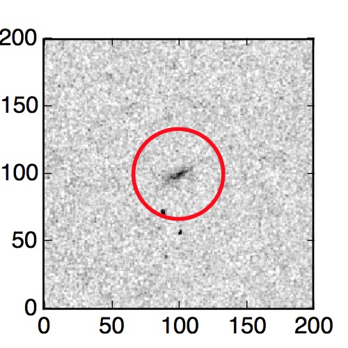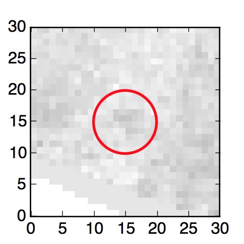 The red circle in the various panels is 1" in radius. The images are 6"x6".