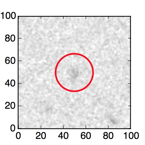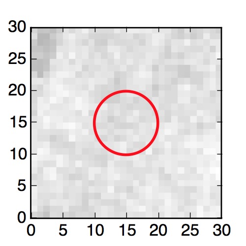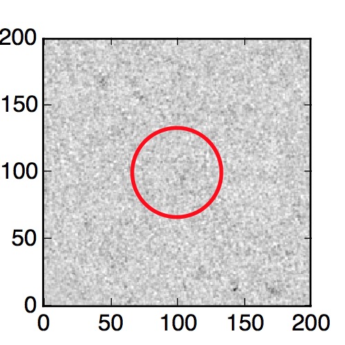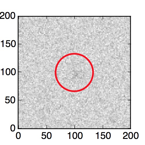 The red circle in the various panels is 1" in radius. The images are 6"x6".