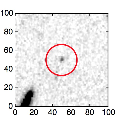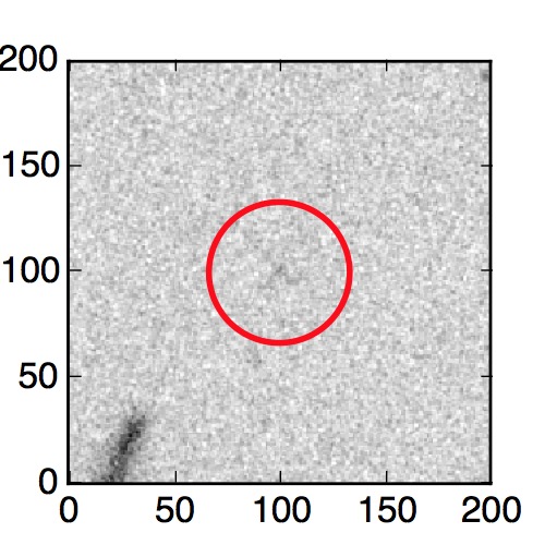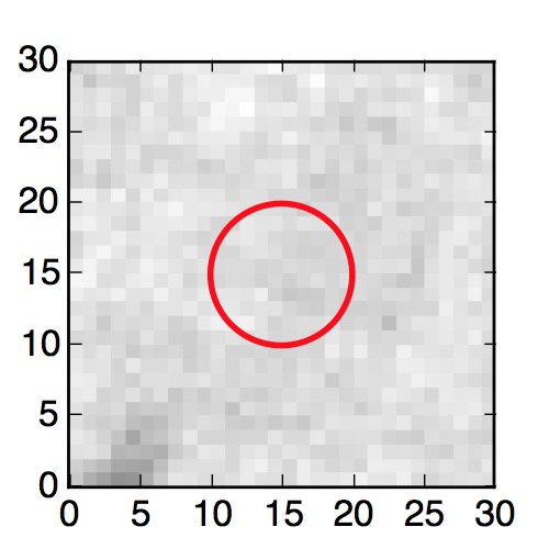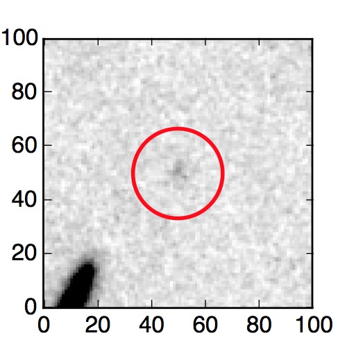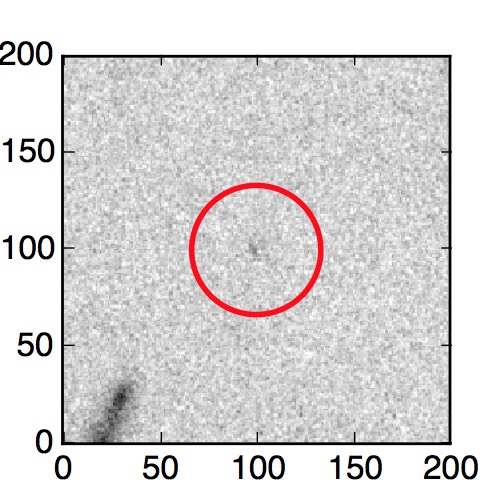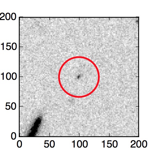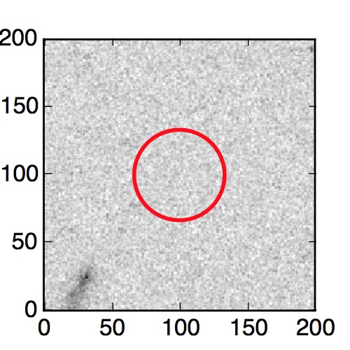 The red circle in the various panels is 1" in radius. The images are 6"x6".