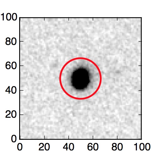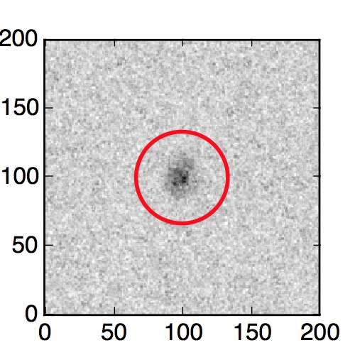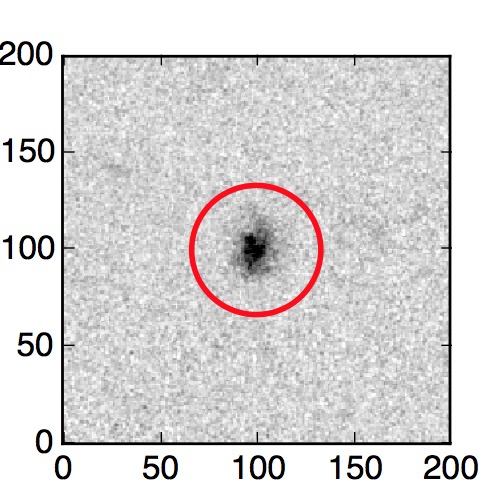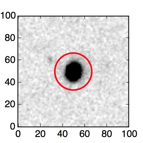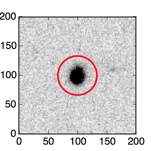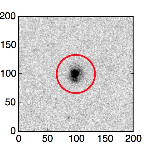 The red circle in the various panels is 1" in radius. The images are 6"x6".