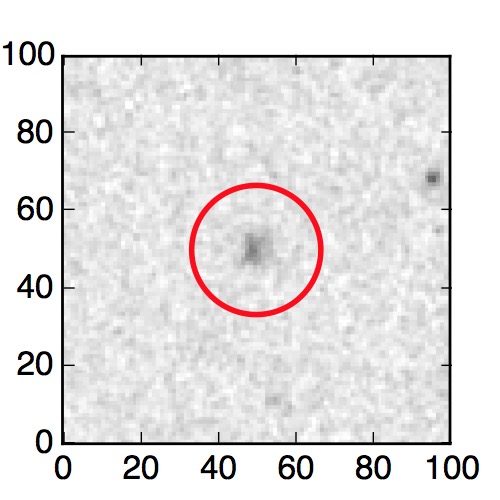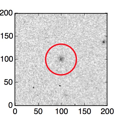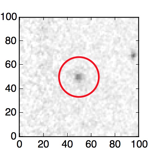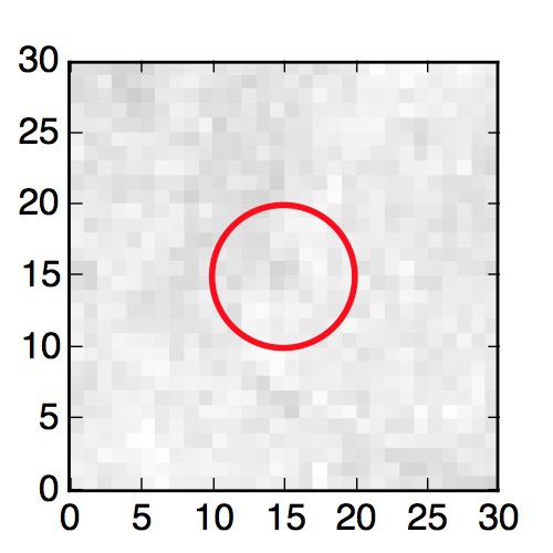 The red circle in the various panels is 1" in radius. The images are 6"x6".