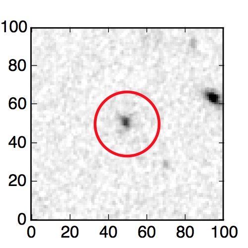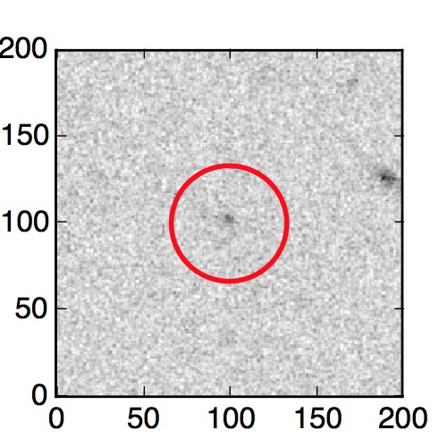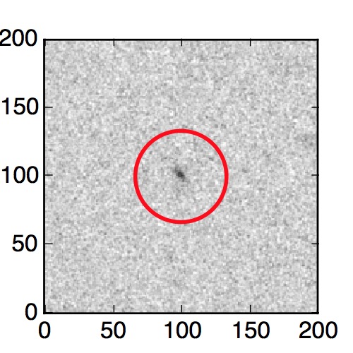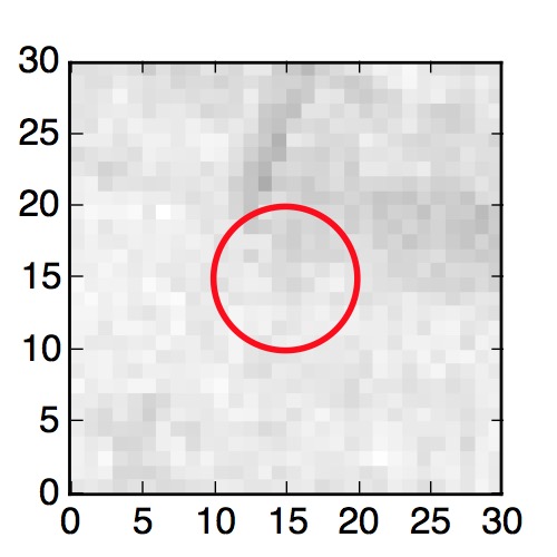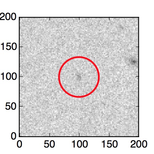 The red circle in the various panels is 1" in radius. The images are 6"x6".