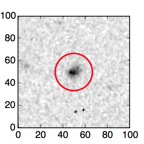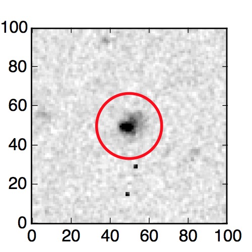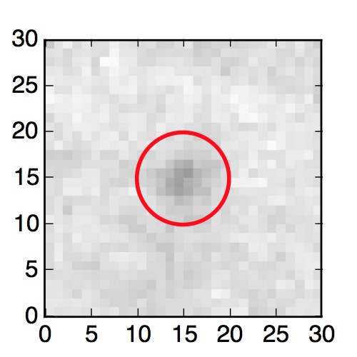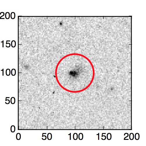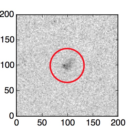 The red circle in the various panels is 1" in radius. The images are 6"x6".