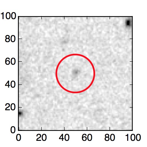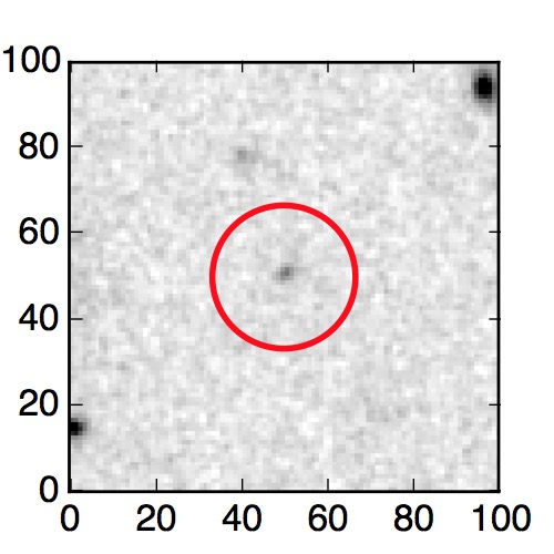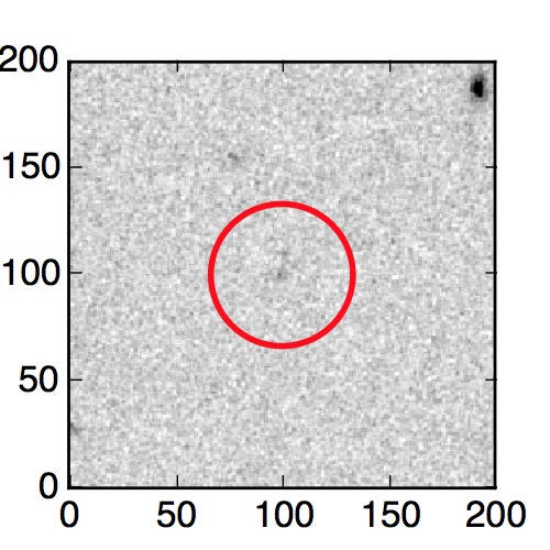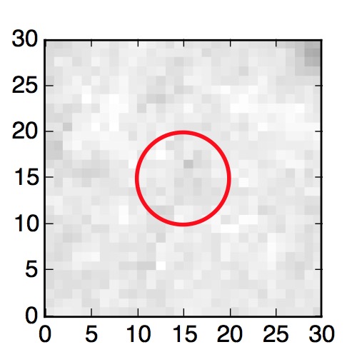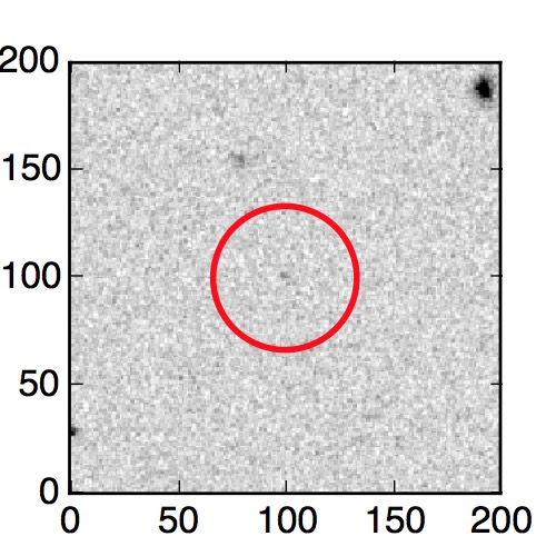 The red circle in the various panels is 1" in radius. The images are 6"x6".