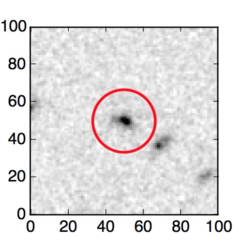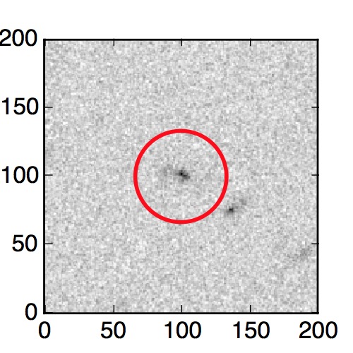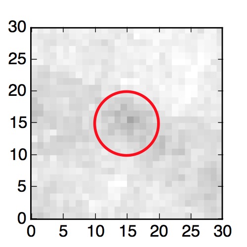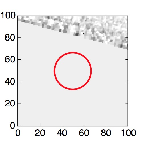 The red circle in the various panels is 1" in radius. The images are 6"x6".