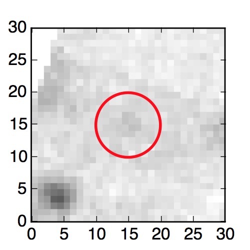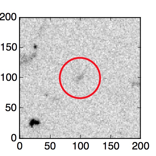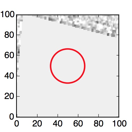 The red circle in the various panels is 1" in radius. The images are 6"x6".