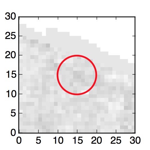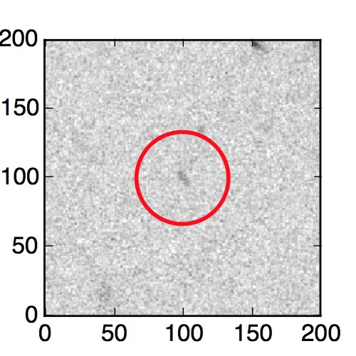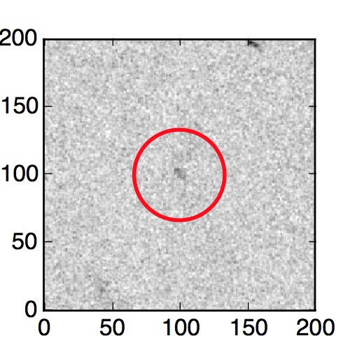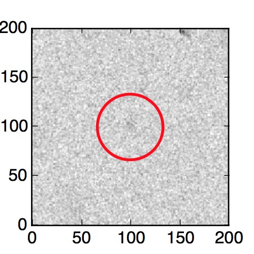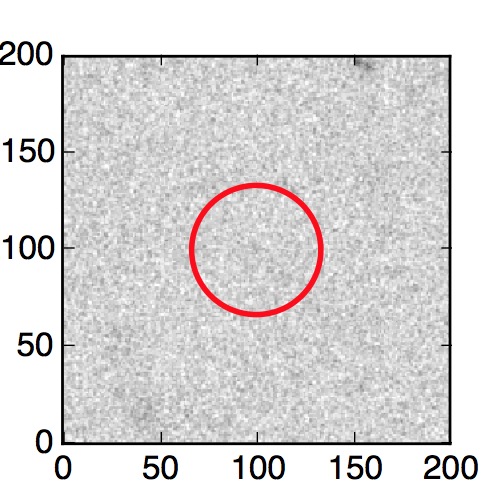 The red circle in the various panels is 1" in radius. The images are 6"x6".