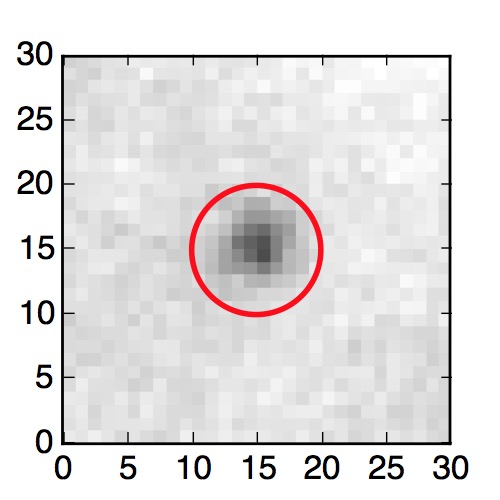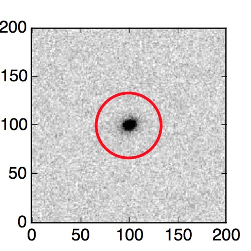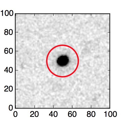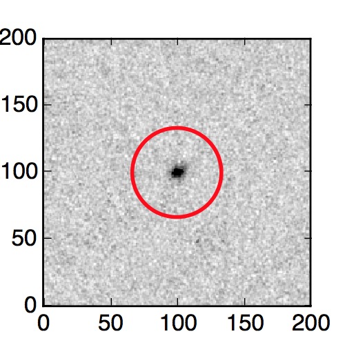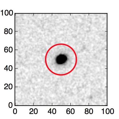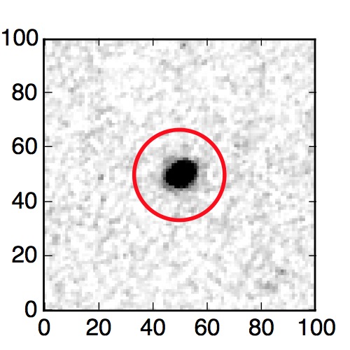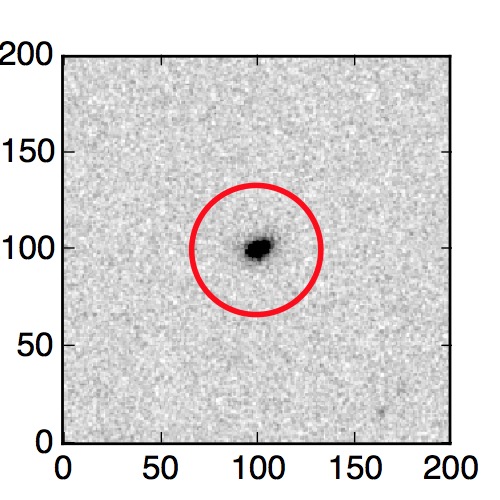 The red circle in the various panels is 1" in radius. The images are 6"x6".