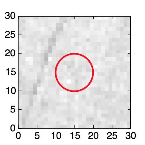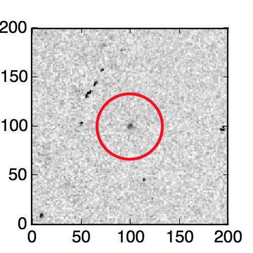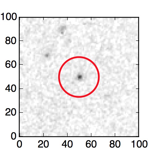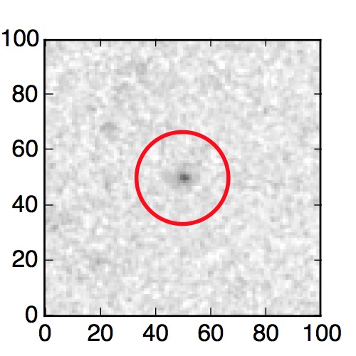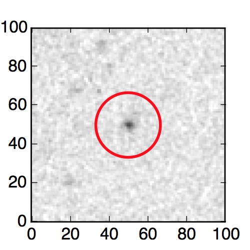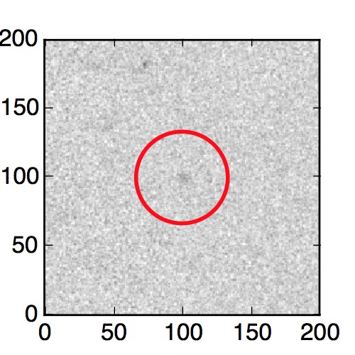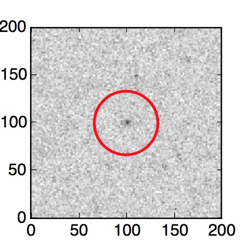 The red circle in the various panels is 1" in radius. The images are 6"x6".