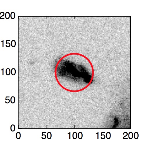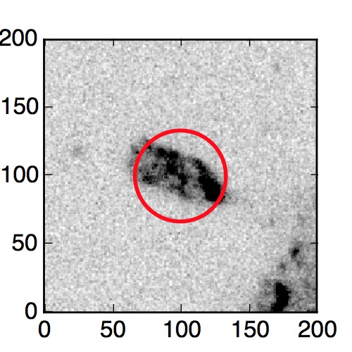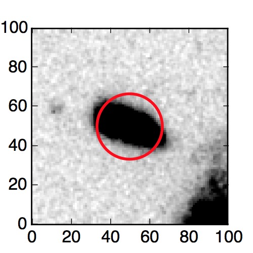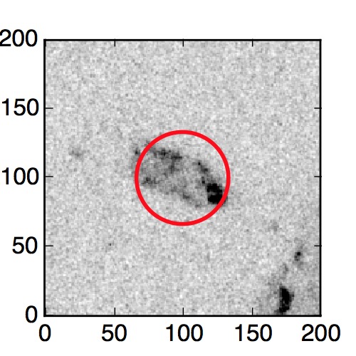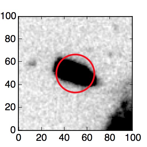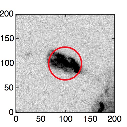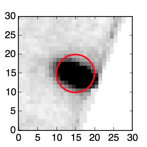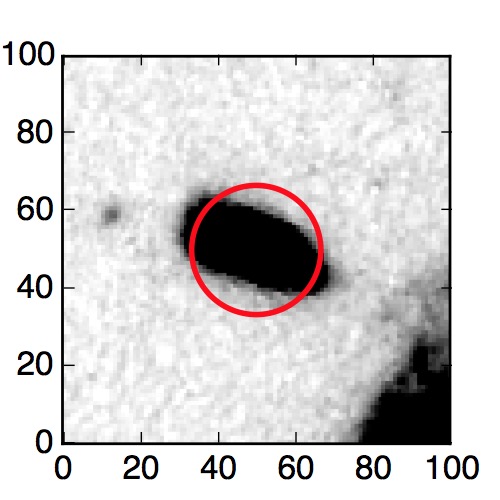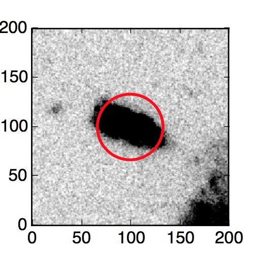 The red circle in the various panels is 1" in radius. The images are 6"x6".