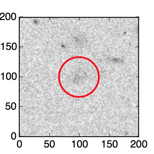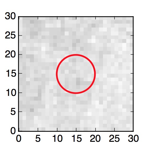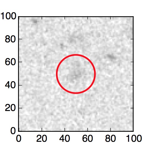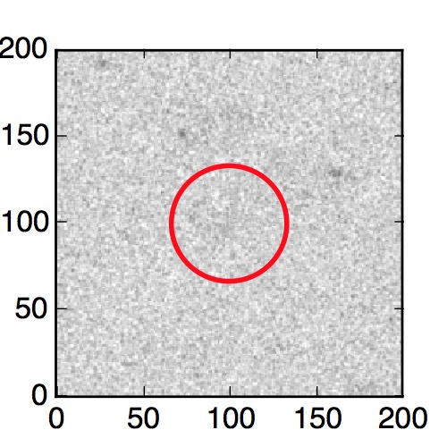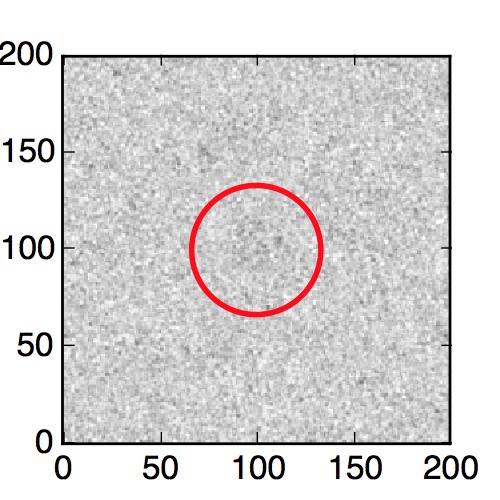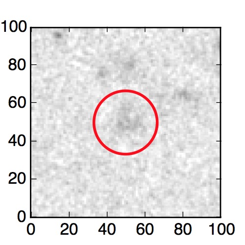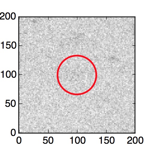 The red circle in the various panels is 1" in radius. The images are 6"x6".