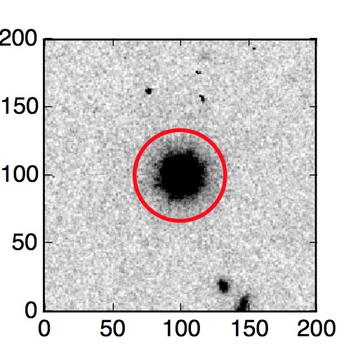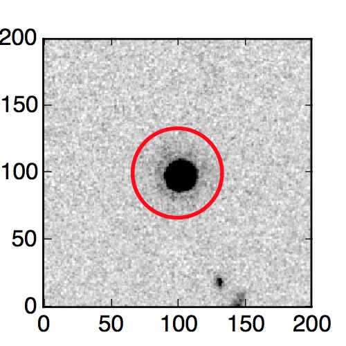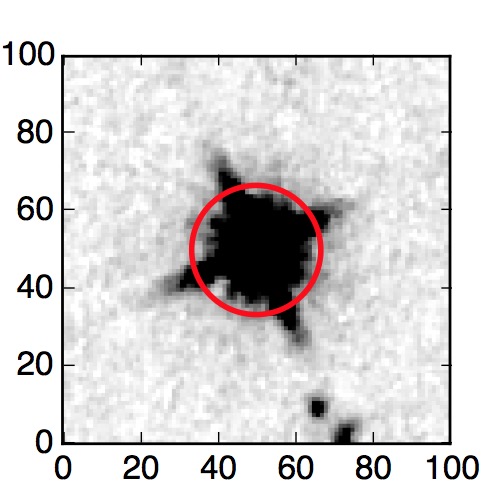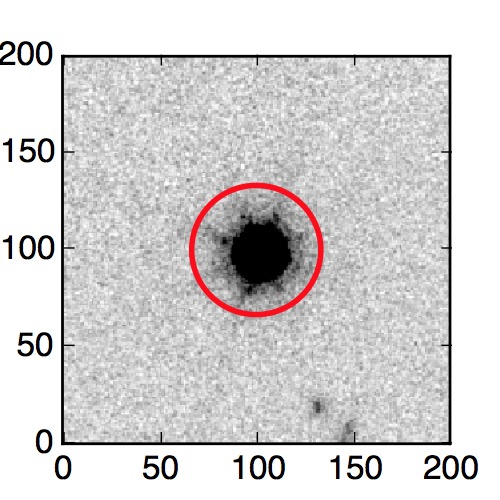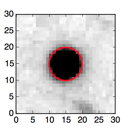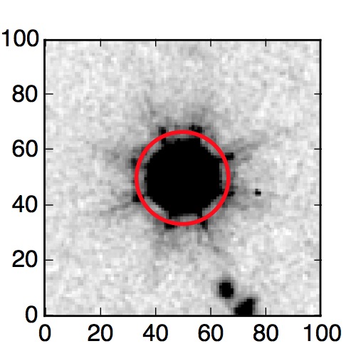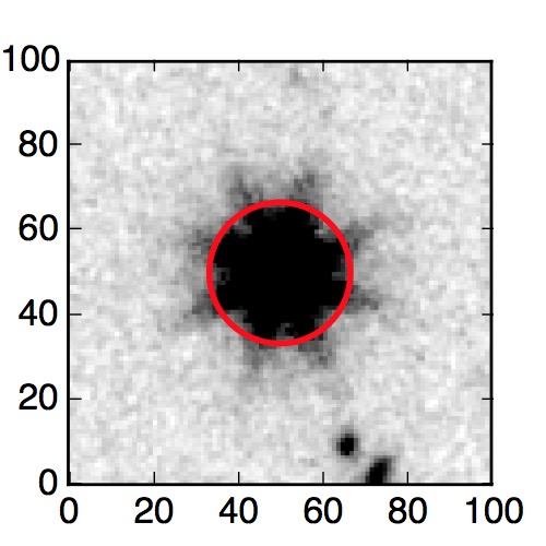 The red circle in the various panels is 1" in radius. The images are 6"x6".