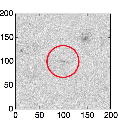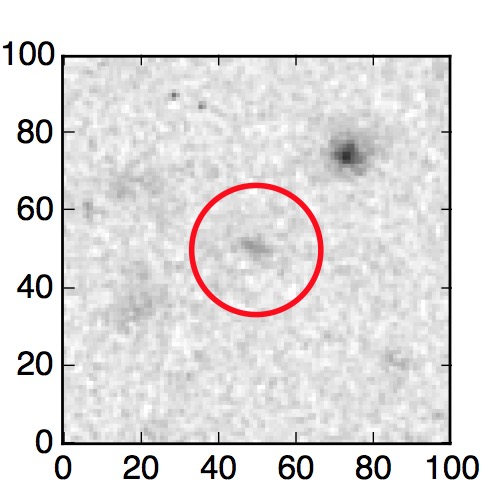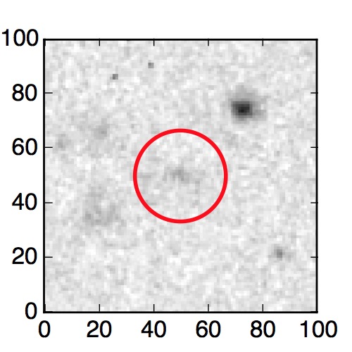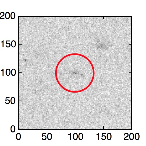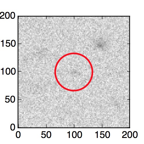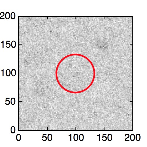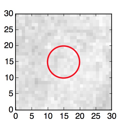 The red circle in the various panels is 1" in radius. The images are 6"x6".