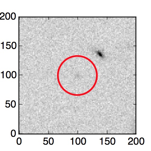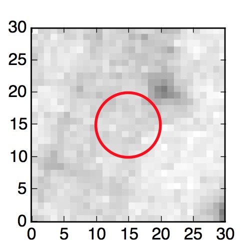 The red circle in the various panels is 1" in radius. The images are 6"x6".